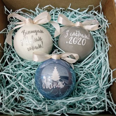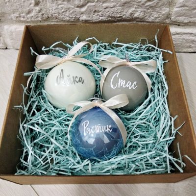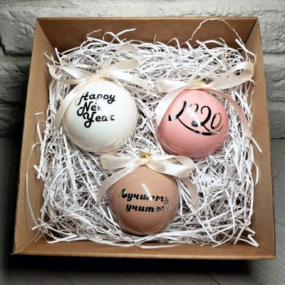 Набор ёлочных шаров с индивидуальной надписью (стекло 8см) / Арт.60
