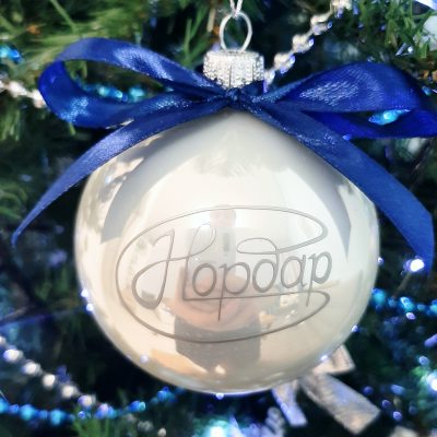 Ёлочный шар с индивидуальной надписью (стекло 8см) / Арт.57